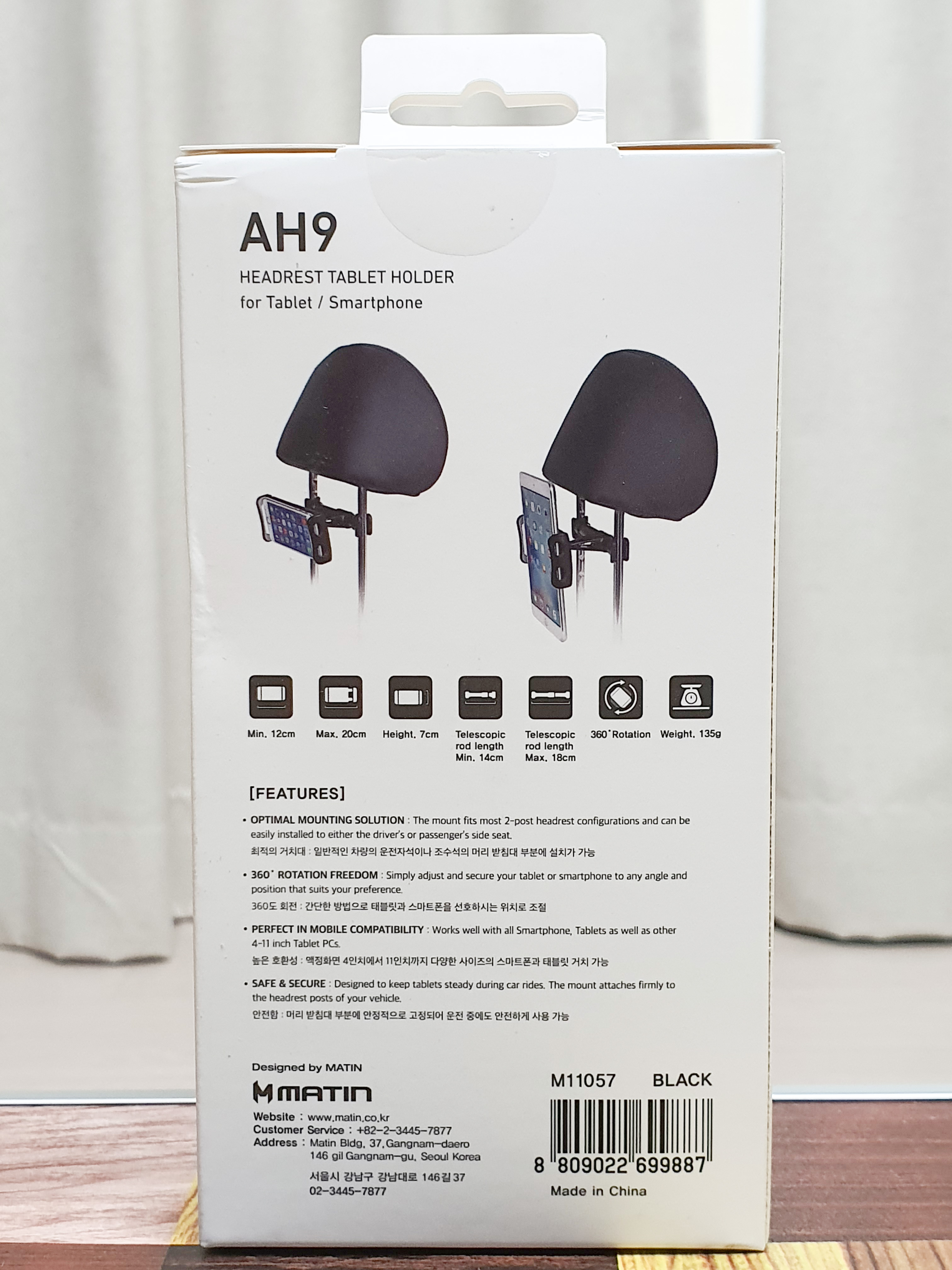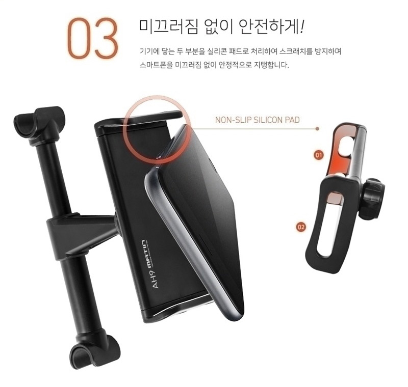매틴 AH9 헤드레스트 거치대는 자동차 뒷좌석 헤드레스트에 거치하여 스마트 기기들을 사용하는 제품입니다.