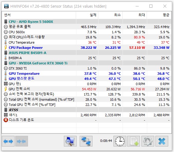 평균 온도를 낮추려면 아무래도 요즘 유행하는 2열 수랭쿨러로 업그레이드를 해줘야 한다는 것을 피부로 느끼고 있네요. ^^